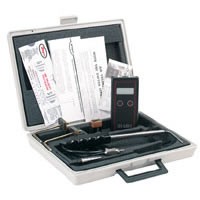 方便使用的全套工具箱體積小、重量輕,且易于使用。無需進行設(shè)置或調(diào)整。數(shù)字壓力計可以測量0-19.99 英寸水柱,精度為±0.5%滿量程,最小分度達0.01。1/2"大液晶讀數(shù)即使在光線不足的地方也易于看清,同時還帶有"電源不足"提示。工具箱中還有一個伸縮式166T型皮托管,長度在11.5~ 36" (29.2~91.4 Cm)之間可調(diào)。皮托管上有一體的緊固件,讀數(shù)時可以使其保持位置穩(wěn)固。同時,帶磁力固定件的兩個靜壓端可以測量過濾器和凝氣盤管造成的壓降。工具箱中還配有橡膠Tubing管、9V電池、階梯鉆頭、AV計算尺,以及便攜箱。這種工具箱是工廠工程師、工業(yè)衛(wèi)生學(xué)者和HVAC技術(shù)人員不可缺少的測試工具。